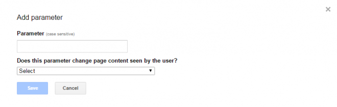 To start configuring the behaviour for a parameter, navigate to the ‘URL Parameters’ section of GWMT and click the ‘Add Parameter’ button.