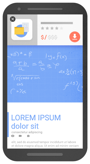 - Using a layout where the above-the-fold portion of the page appears similar to a standalone interstitial, but the original content has been inlined underneath the fold.