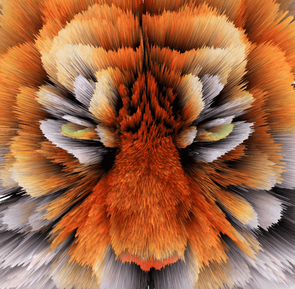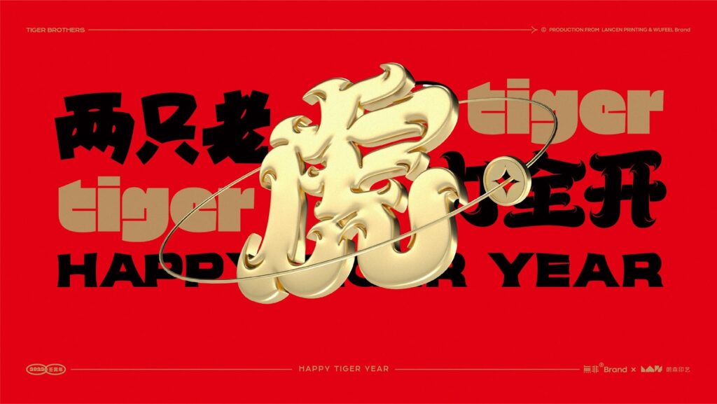 Past the first wave of gimmick-y characters, I came across a different approach to honour the tiger, which I found quite interesting. Because it doesn’t have to be a render, it doesn’t have to be actual 3D – all you need is a great use of shadows, directions, and perspective to create a good 3-dimensional piece. This tiger portrait plays with converging lines mimicking the fur, emphasising on the movement. This is truly what the Chinese new year is about: transitioning, stepping into a new world, getting rid of the old year and its bad habits. The multiple layers masquerading as a hyperspace simulation is a clever allusion to space, which hosts the moon and is home to its lunar cycles (which are the focal point of the Chinese Calendar).