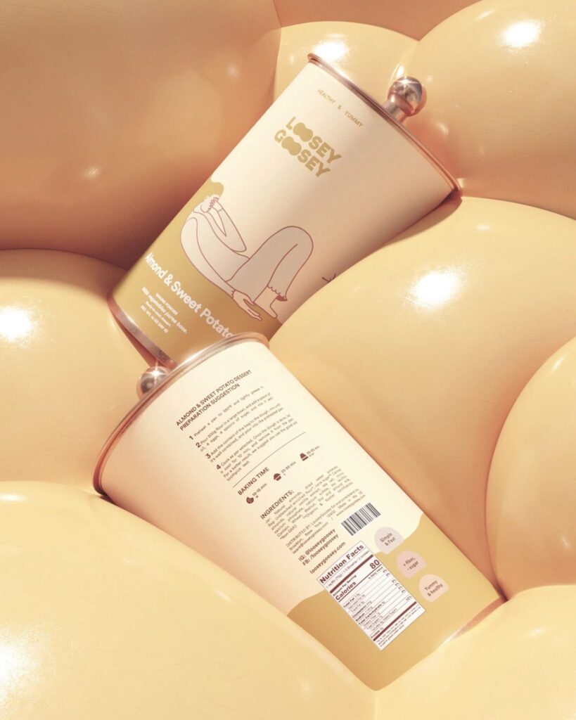 I found a vestige of this cluster-like visual pictured below from late 2021. The bubbly shapes merge together in a reassuring fashion, and this friendly roundness inspires rest, cocooning and self-indulgence. You just have to love how the product literally sinks into the cushiony agglomerate