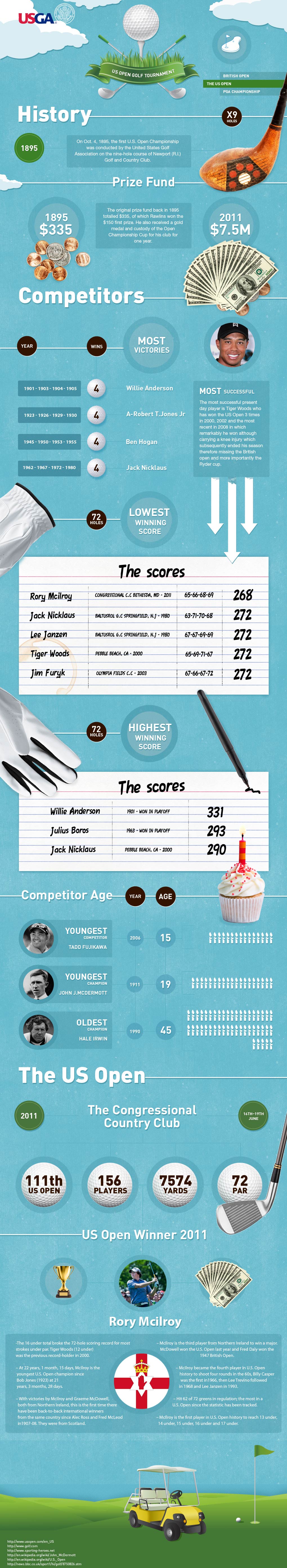 In celebration of the US Open Golf Tournament and Rory Mcllroy’s winning victory, the design team at Blueclaw have produced this stylish infographic on behalf of Direct Golf. It looks back over the history of the famous tournament, highlighting golfing genius moments and naming the most successful players to date.