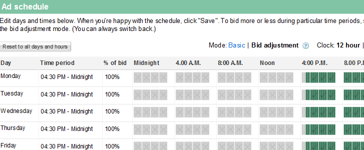 You can also easily implement geo-targeting or enable ‘day-parting’ and set different bids for different times of the day or day of the week.